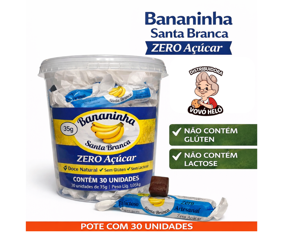 🍌Bananinha Santa Branca Zero Açúcar – Pote Econômico com 30 Unidades 💛