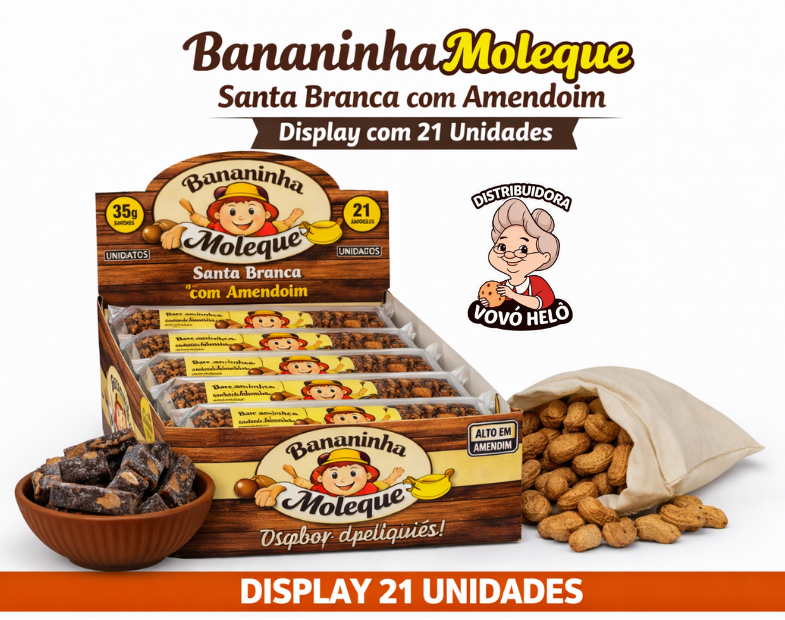 🍌 Bananinha Moleque Santa Branca com Amendoim – Display com 21 Unidades | Sabor Artesanal e Irresistível